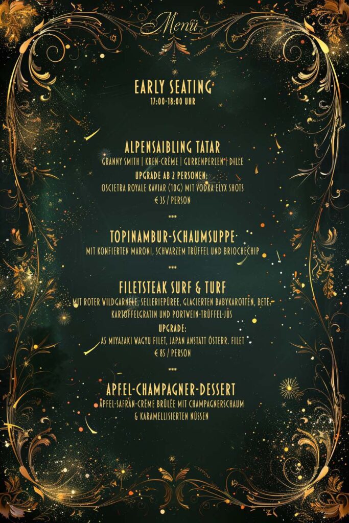 Silvester – Öffnungszeiten & Menüzeiten