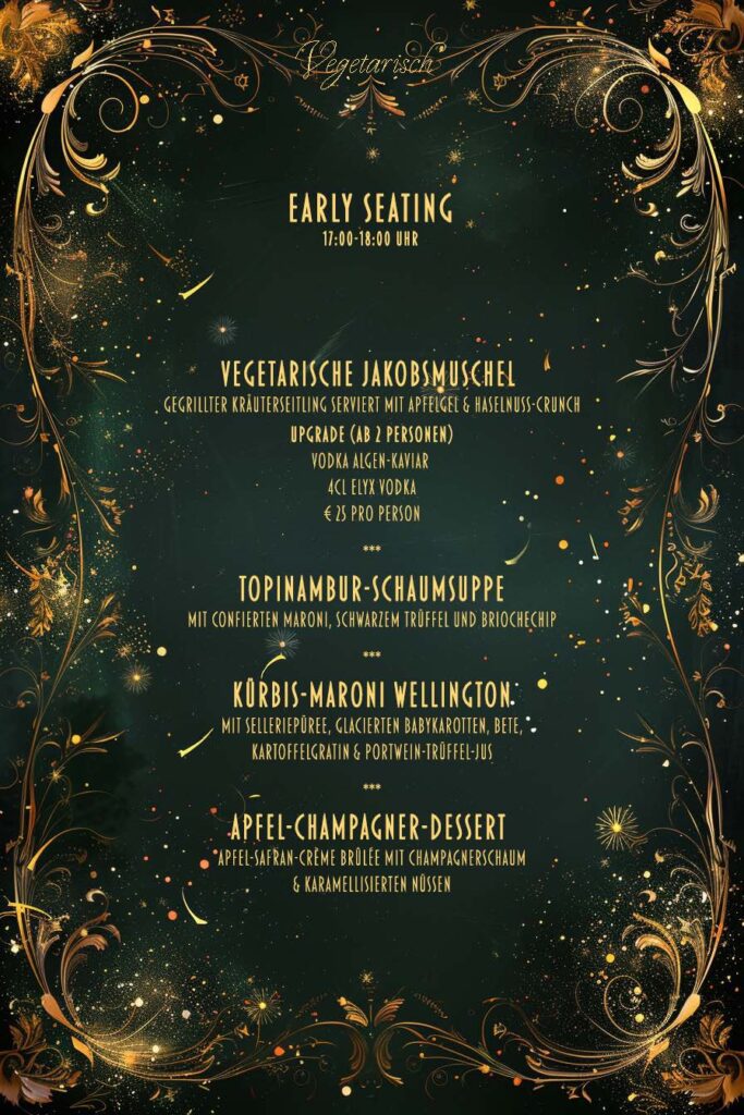 Ab 20:00 Uhr servieren wir unser 6-Gang-Silvestermenü